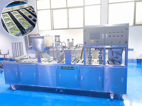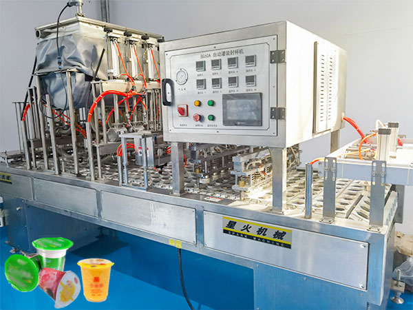 星火智能自主研发的全自动灌装封口机集杯、盒等容器的高精度灌装、高效封口、多维打码、智能检测,自动装箱于一体化的运作模式,该机械设备全线核心功能采用伺服驱动PLC智能控制系统,使其封口效率高度99%,针对于盒装商品的封口定位,全自动灌装封口机采用了热封配置,可确保每一盒包装膜的牢固封口,开启顺畅的生产条件,集成视觉化的系统运作,可自动识别并剔除漏封以及异物不良的操作条件,全自动灌装封口机可与紫外消毒、日期打码等机械设备进行联动运作的方式,可适配于铝塑、PP、CPP等多种材料,以此满足杯装、盒装等容器的封口需要。当工作人员在显示器内进行参数规格的预设后,卷筒薄膜将在物料注入后,快速进行加热,封口的时间则根据预设的参数值进行无菌封口模块。
